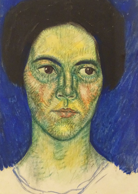 1912-Johannes Itten (1888-1967). Porträt einer Frau vor Blau, 1912. Kunstmuseum Bern.