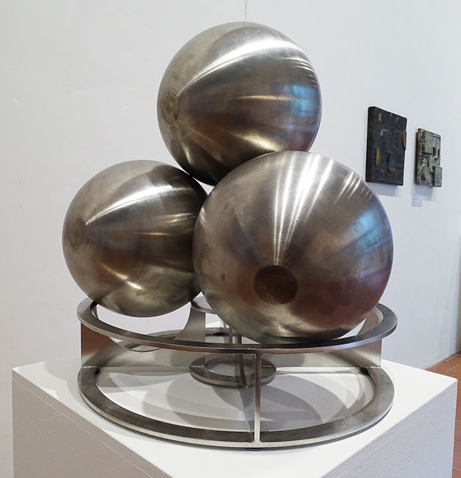 Marianne Jost-Schäffeler (1936). Ohne Titel, 2020. Rotierende Kugeln aus Chromstahl. Leihgabe der Künstlerin.