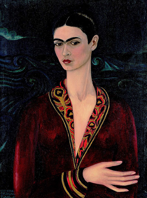 1926-Frida Kahlo (1907-1954). Selbstbildnis im Samtkleid, 1926. Galeria Arvil, Mexico City. WikiArt Fair Use.