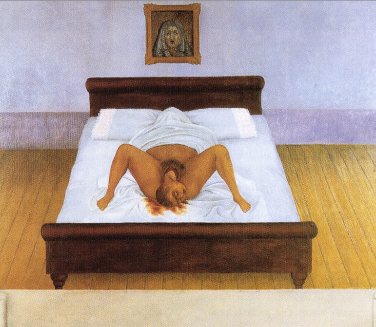 1932-Frida Kahlo (1907-1954). The Flying Bed, 1932. Dolores Olmedo Collection, Mexico City. WikiArt Fair Use.