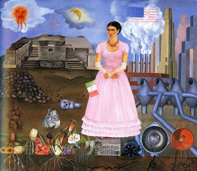 1951-Frida Kahlo (1907-1954). Selfportrait with the Portrait of Doctor Farill, 1951. WikiArt Fair Use.