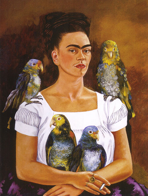 1941-Frida Kahlo (1907-1954). Me and My Parrots, 1941. Harold H. Stream Collection, New Orleans. WikiArt Fair Use.