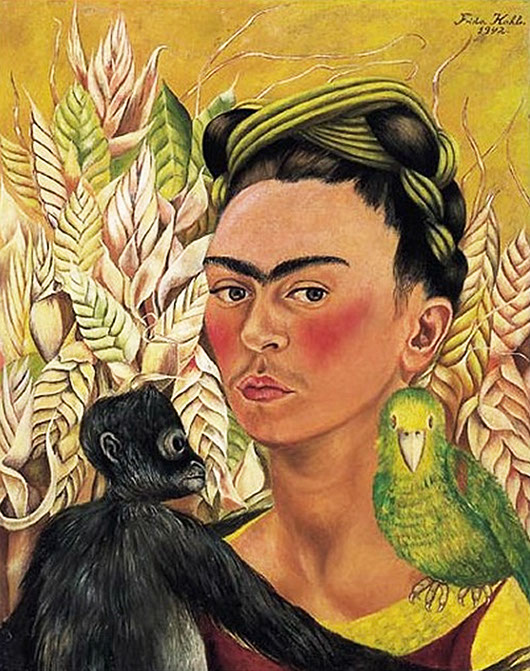 1942-Selfportrait with Monkey and Parrot, 1942. Museo de Arte Latinoamericano de Buenos Aires. WikiArt Fair Use.