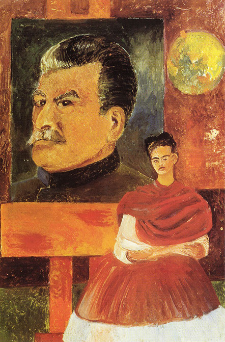 1954-Frida Kahlo (1907-1954). Selfportrait with Stalin, 1954. Frida Kahlo Museum, Mexico City. WikiArt Fair Use.