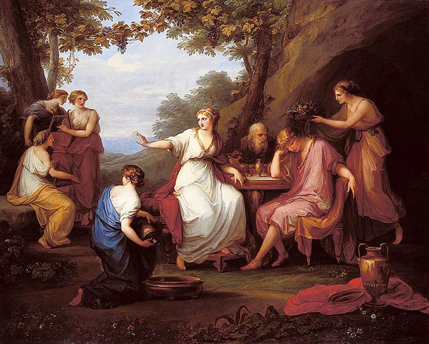 1788-Angelika Kauffmann. Der trauernde Telemach mit Mentor auf der Insel Kalypso, 1788. Bündner Kunstmuseum, Chur.