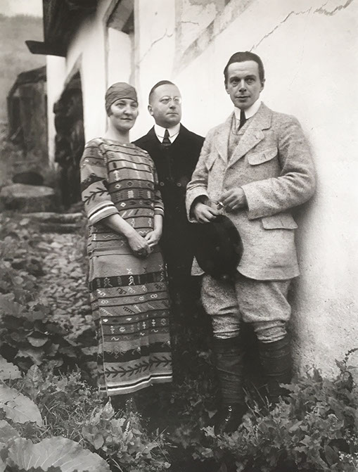 Erna Schilling, Walter Kirchner und Ernst Ludwig Kirchner vor dem Haus in den Lärchen, 1923.