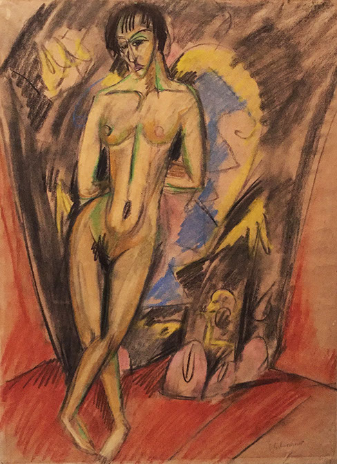 Stehender Akt vor dem Zelt, 1913-14. Museum Kunstpalast, Düsseldorf.
