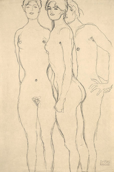 1916-Gustav Klimt (1862-1918). Drei stehende Mädchenakte, 1916-17. Sammlung Kamm, Kunsthaus Zug.