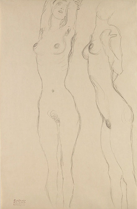 1916-Gustav Klimt (1862-1918). Zwei Akte, der Linke mit erhobenen Armen, 1916-17. Leopold Museum Wien.