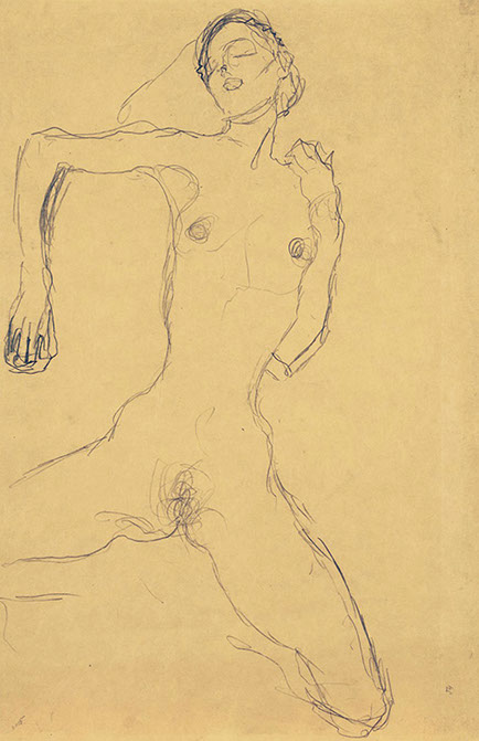 1917-Gustav Klimt (1862-1918). Sitzender Akt, Kopf nach links, 1917-18. Sammlung Kamm, Kunsthaus Zug.