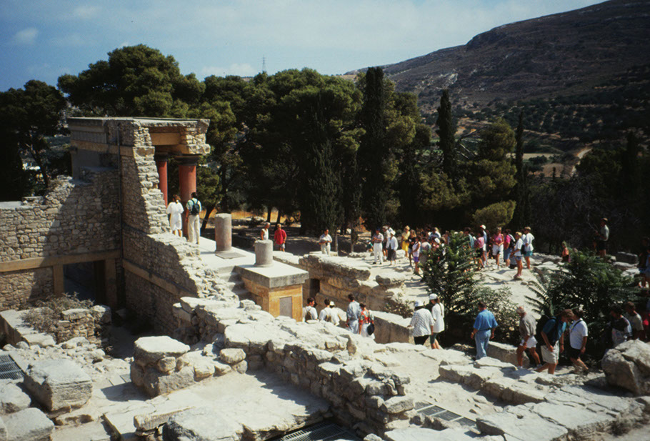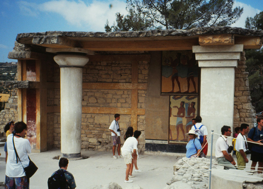 Alabaster-Thron des mystischen Königs Minos. Fabelwesen bewachen den (für einen König relativ kleinen Raum).