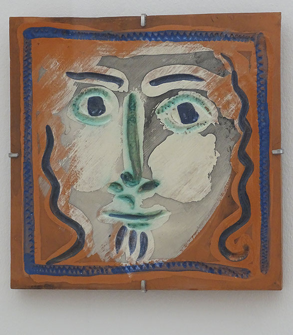Pablo Picasso (1881-1973). Plaque carrée avec visage aux cheveux bouclés, 1968-59. Fayence. Ludwig Museum Köln.