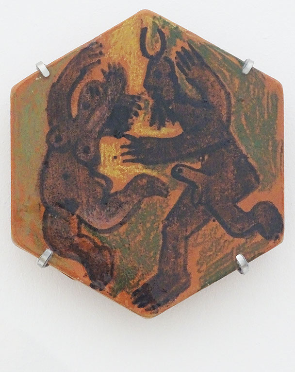 Pablo Picasso (1881-1973). Tomette hexagonale avec scène érotique, 1962. Fayence. Ludwig Museum Köln.