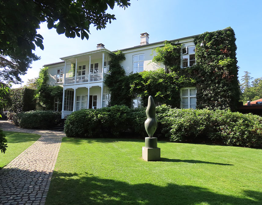 Die 1855 erstellte Villa in Humblebaek, seit 1955 als Museum genutzt. Skulptur Jean Arp.