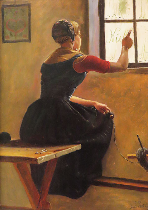 Christen Dalsgaard (1824-1907). Young Girl writing her Beloved's Name on a Misty Window, 1852.