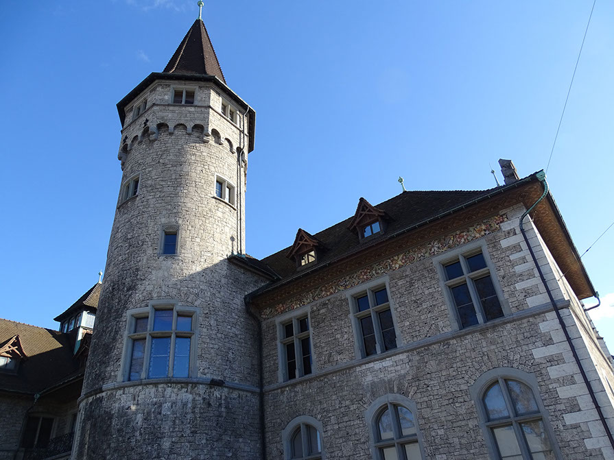 Von der Limmat aus gesehen. Der moderne Beton-Anbau verdeckt einen grossen Teil des alten Museums.