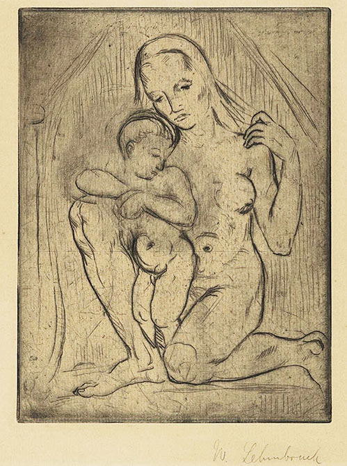 1910-Wilhelm Lehmbruck (1881-1919). Madonna, Mutter mit Kind, kniend, 1910. Kunsthaus Lempertz. Foto WikiCommons.