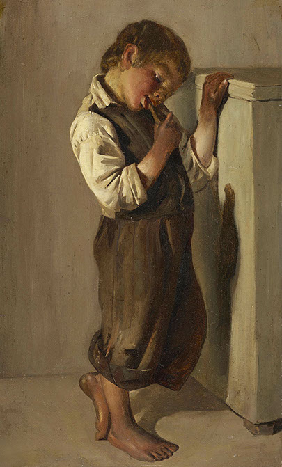 1856-Franz von Lenbach (1836-1904). Bauernjunge beim Brotessen, 1856-58. Lenbachhaus München.