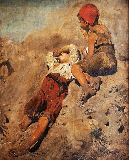 1859-Franz von Lenbach (1836-1904). Italienerknaben, 1859. Schloss Weimar.