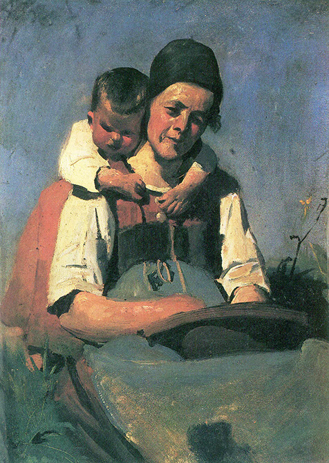 1861-Franz von Lenbach (1836-1904). Bäuerin mit Kind, 1861. Landesmuseum Hannover.