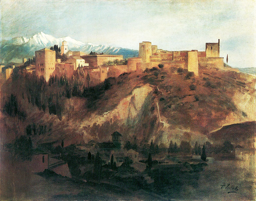 1868-Franz von Lenbach (1836-1904). Die Alhambra in Granada, 1868. Bayrische Staatsgemäldesammlungen, München.