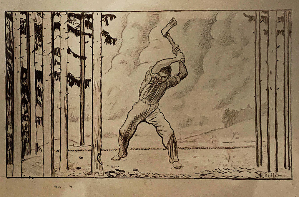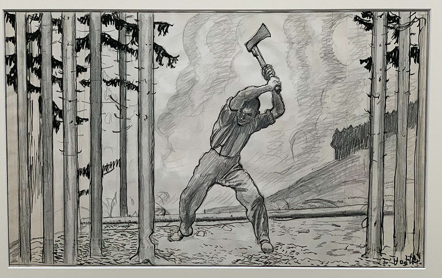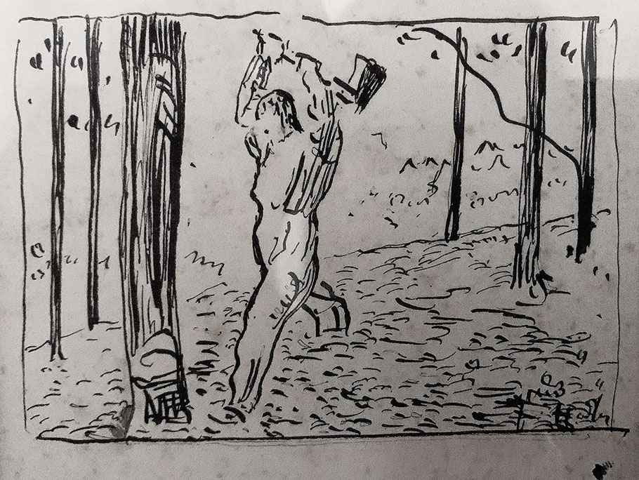 Ferdinand Hodler (1853-1918). Der Holzfäller, 1910. Bleistift und Tusche auf Papier. Privatbesitz.