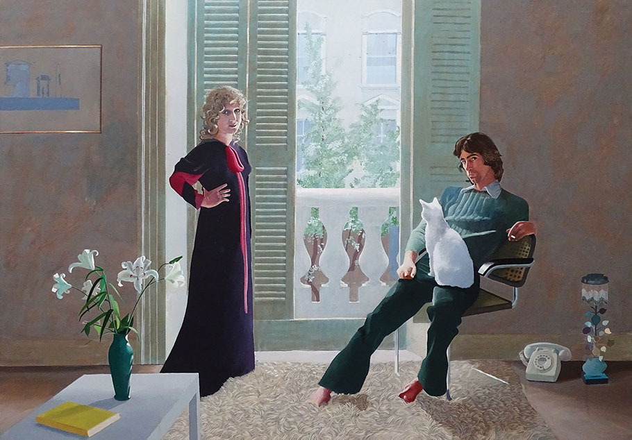 1984-David Hockney (1937). A Visit with Mo and Lisa, Echo Park, 1984. Rechte Hälfte Diptychon. Privatsammlung.
