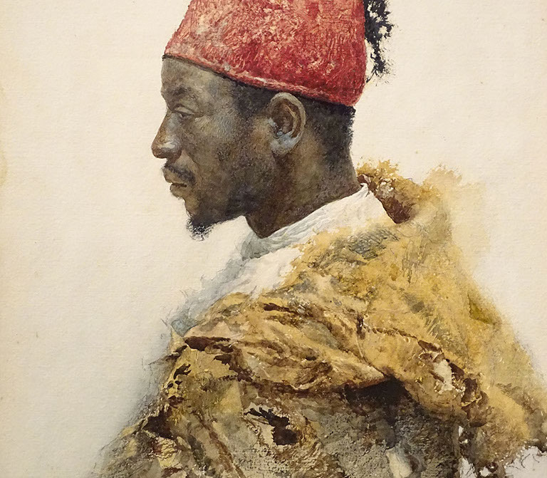 Josep Tapiro (1836-1913). Tangerino con tarbouche rojo, 1890-1900. Ausschnitt.