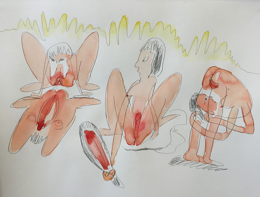 Andrea Eva Györi (1985), Budapest, Ungarn. In privaten Treffen porträtierte sie Frauen bei der Selbstbefriedigung. Zeichnungen dokumentieren eigene Erfahrungen in den besuchten Kursen.
