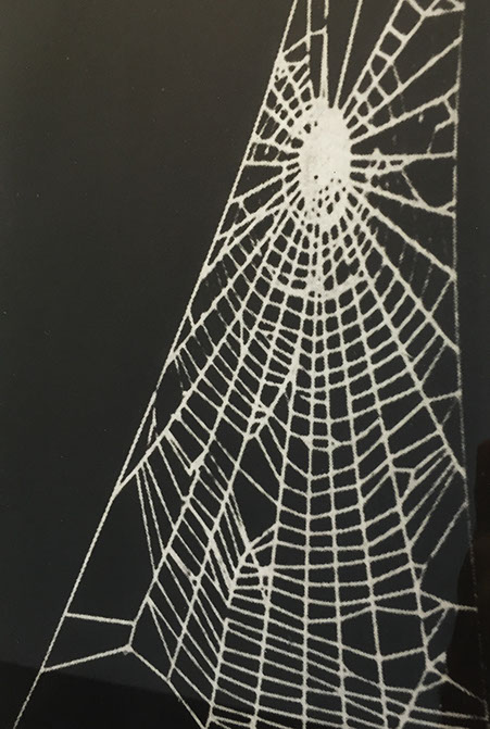 Rosemarie Trockel. Die Spinnweben dokumentieren wissenschaftliche Experimente, in denen Spinnen LSD, Haschisch und Meskalin verarbreicht bekamen.