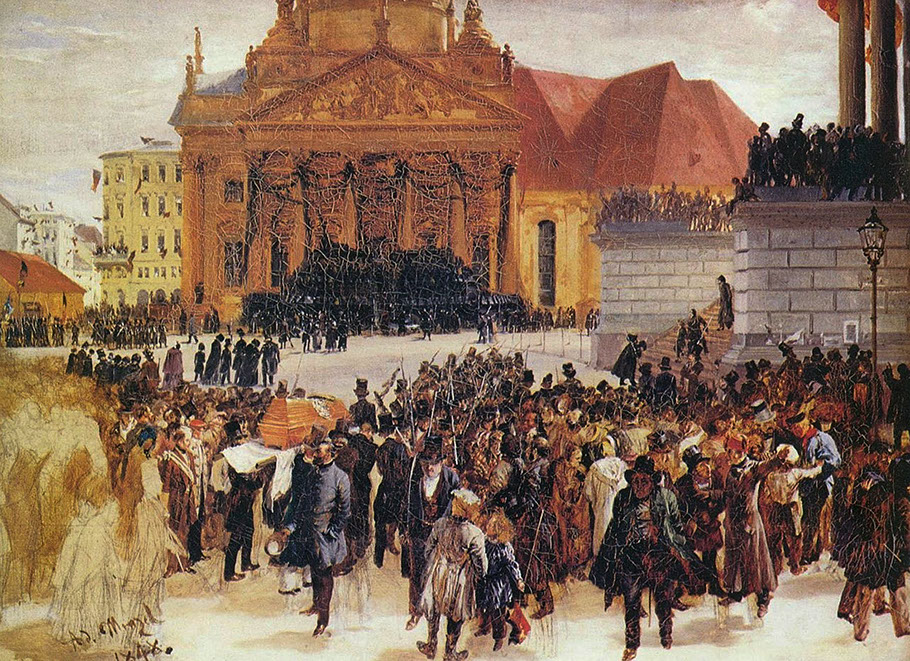 1848-Adolph von Menzel (1815-1905). Aufbahrung der Märzgefallenen, 1848. Alte Nationalgalerie Berlin.
