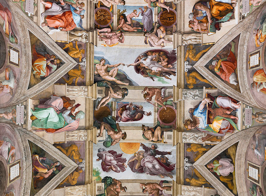 Michelangelo (1475-1564). Decke der Sixtinischen Kapelle (Ausschnitt), Foto Aaron Logan, WikiCommons.