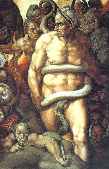 Michelangelo (1475-1564). Inos with the snake attribut, 1536-41. Detail aus dem Jüngsten Gericht, Sixtinische Kapelle.