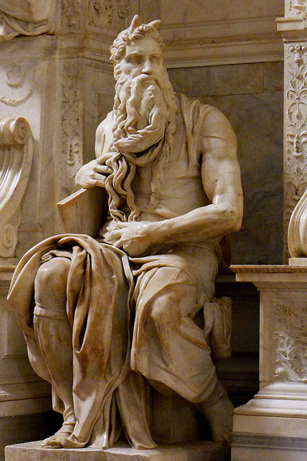 Michelangelo (1475-1564). Moses, Grabmal Julius II, San Pietro in Vincoli, Rom. Foto Jörg Bittner Unna, WikiCommons.