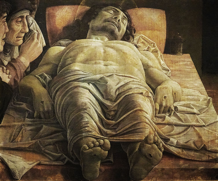 Andrea Mantegna (1431-1506). Cristo Morto nel Sepolcro e tre Dolenti, 1483. Brera Milano.