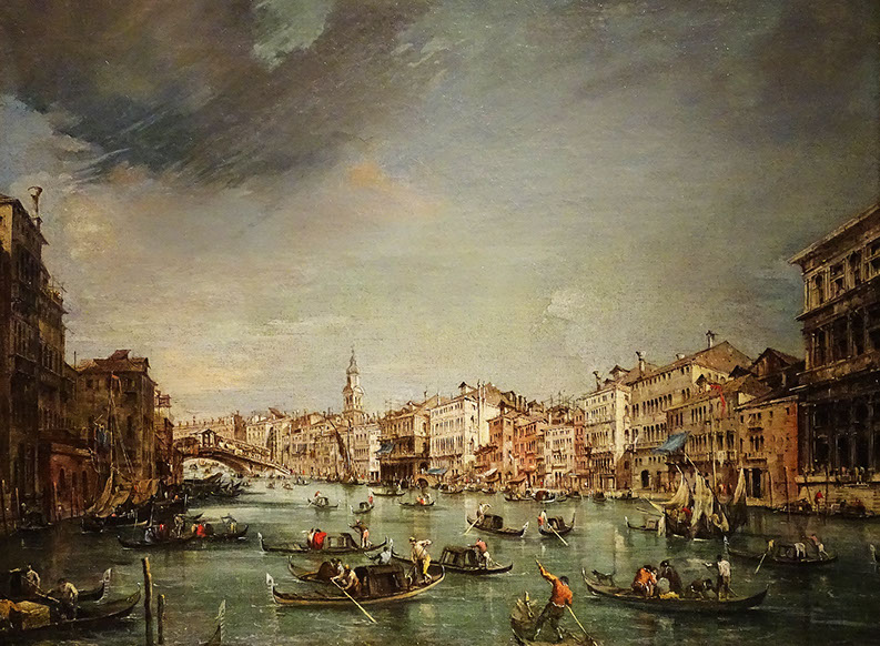 Francesco Guardi (1712-1793). Veduta del Canal Grande verso Rialto, 1756-60. Brera Milano.