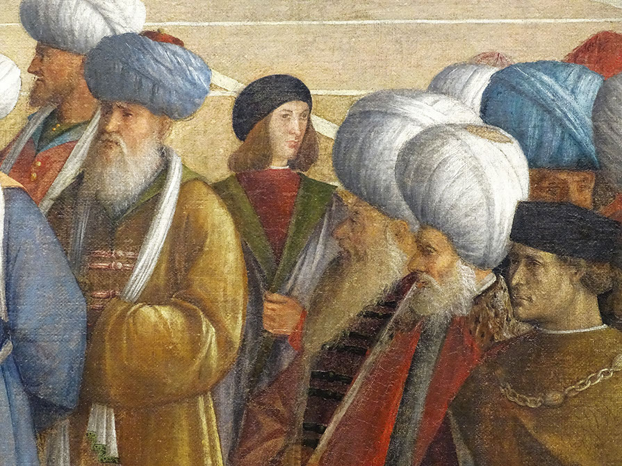 Gentile Bellini (1432-1507 e Giovanni Bellini (1430-1516). Predica di San Marco in Alessandria, 1504-1507. Detail.