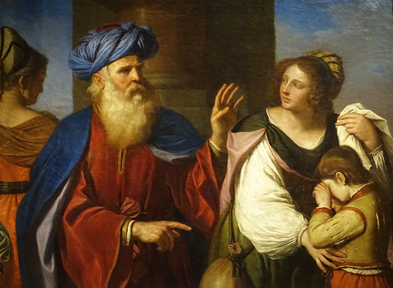 Guercino (Giovan Battista Barbieri 1591-1666). Abramo ripudia Agar e Ismaele, 1657. Brera Milano.