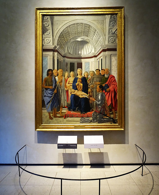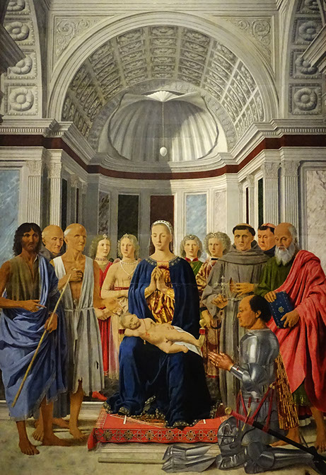 Piero della Francesca (1414-1492). Madonna col Bambino e Santi, Angeli e Federico da Montefeltro, 1465-70.