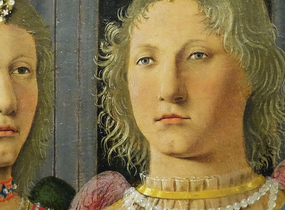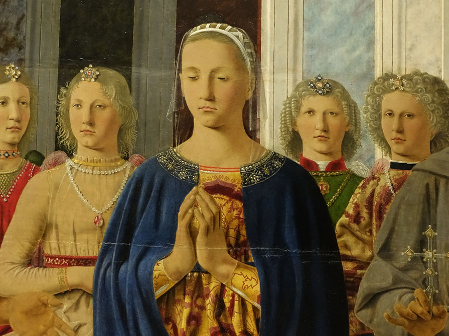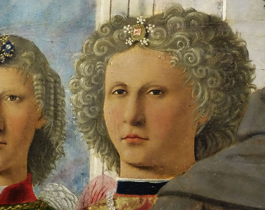 Piero della Francesca (1414-1492). Madonna col Bambino e Santi, Angeli e Federico da Montefeltro, 1465-70. Detail.