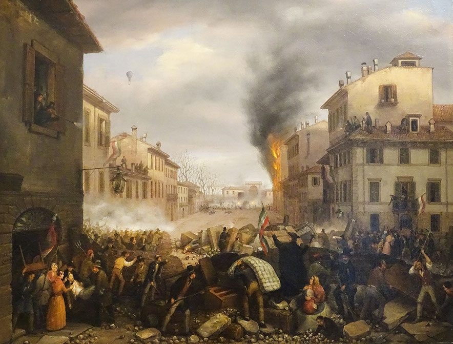 Carlo Canella (1800-1879). Porta Tosa in Milano (il 22 Marzo 1848), 1848-50. Galleria d'Italia Milano.