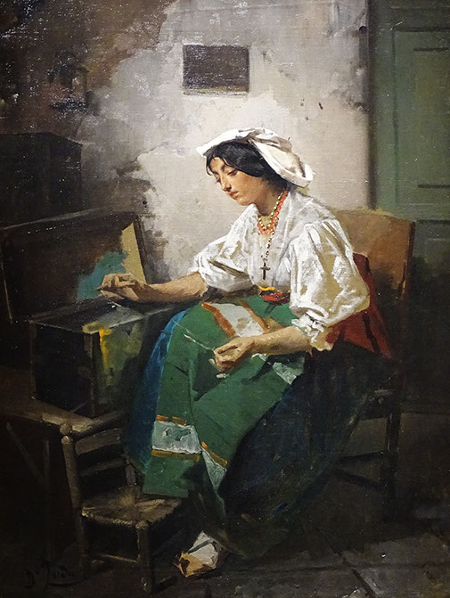 Domenico Induno (1815-1878). Ragazza che cuce, 1860-70. Galleria d'Italia Milano.