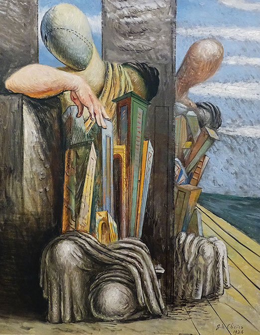 Giorgio de Chirico (1888-1978). Le trouble du philosophe (Le repos du philiosophe, Manichini in riva al mare), 1925-26.