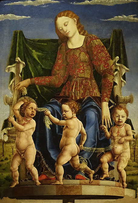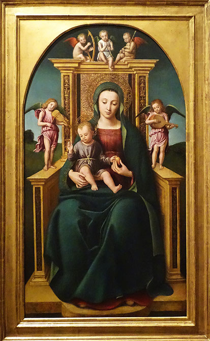 Ludovico Brea (1450-1523). Madonna in trono con il bambino e angeli musicanti, 1510-20. Pezzoli Milano.