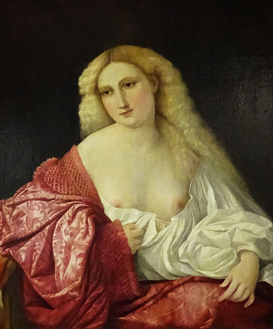 Jacopo Palma il Vecchio (1480-1528). Ritratto femminile detto la Cortigiana, 1520. Museo Pezzoli Milano.