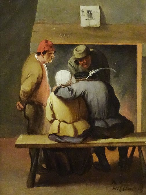 Mathijs van Hellemont (1623-1679). Quattro contadini davanti al focolare, 1650-70. Pezzoli Milano.