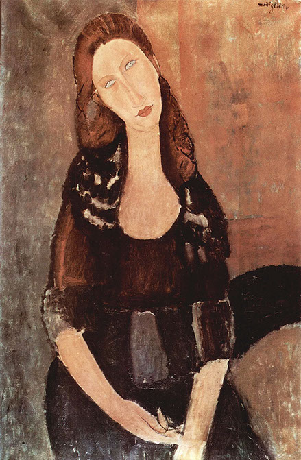 1918-Amedeo Modigliani (1884-1920). Jeanne Hébuterne mit grossem Hut, 1918. Privatsammlung. wikiart.org.