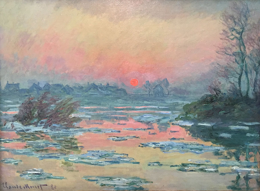 1880-Claude Monet (1840-1926). Soleil Couchant sur la Seine à Lavacourt, effet d'hiver, 1880. Petit Palais, Paris.