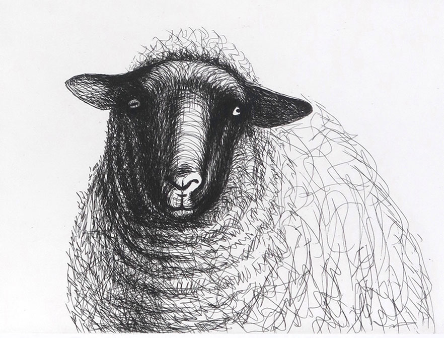 Henry Moore (1898-1986). Head, 1974. Kaltnadelradierung. Mappe Sheep, Gérald Cramer Verleger, Genf.