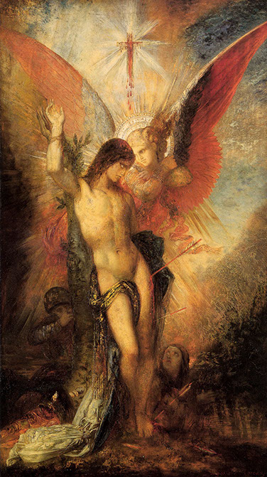 1876-Gustave Moreau (1826-1898). Heiliger Sebastian und der Engel, 1876. Fogg Museum Cambridge.